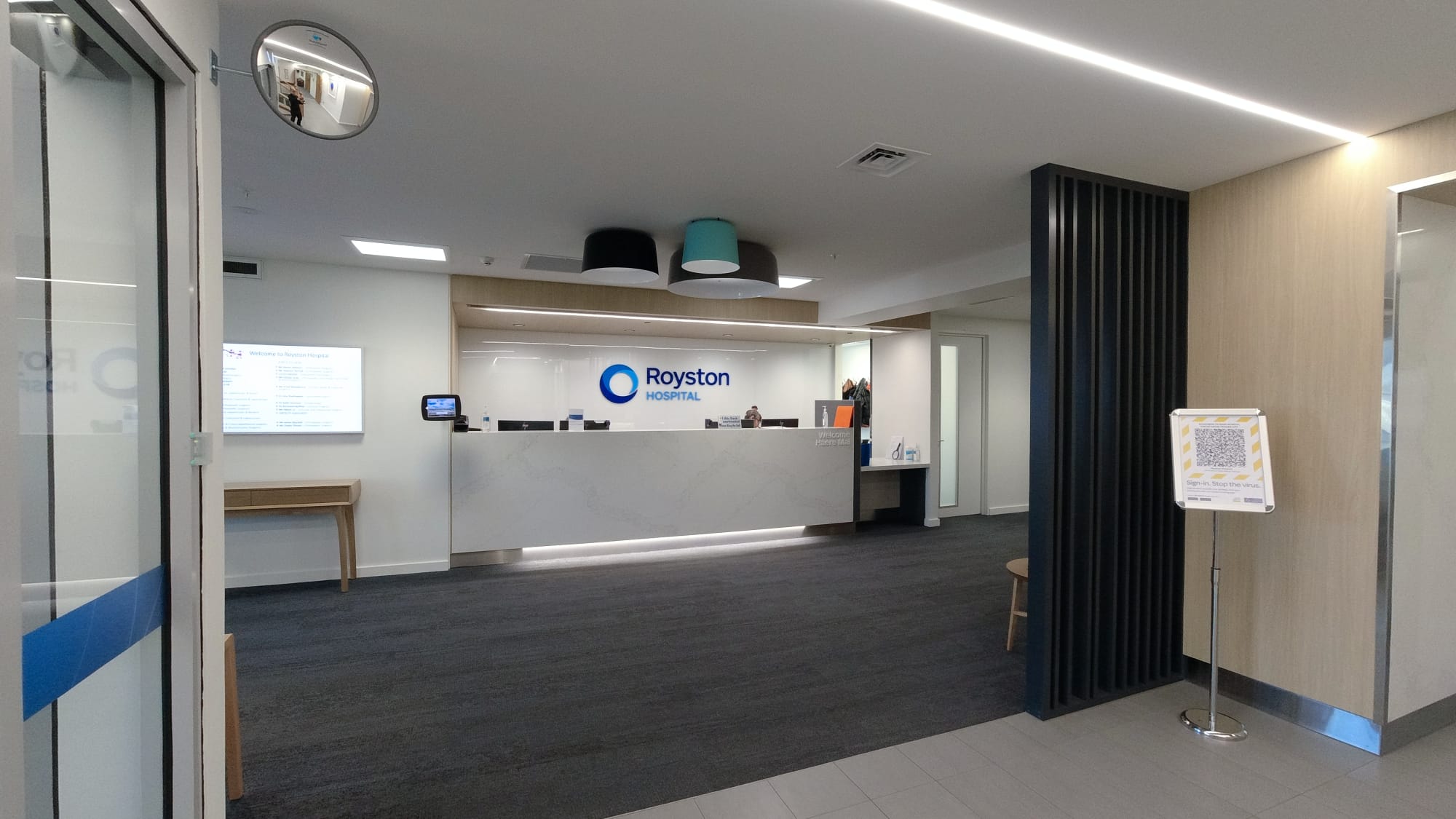 The Royston Hospital Development project involved re-modelling of various internal spaces (consulting suites, theatre changing rooms, clinical rooms, offices, circulation routes, specialist spaces) in a fully functioning hospital environment. The construction of a new building to house three operating theatre suites at ground floor with services above was also included. The hospital reception area was re-modelled to create a large open welcoming space with high quality finishes and improved circulation routes.