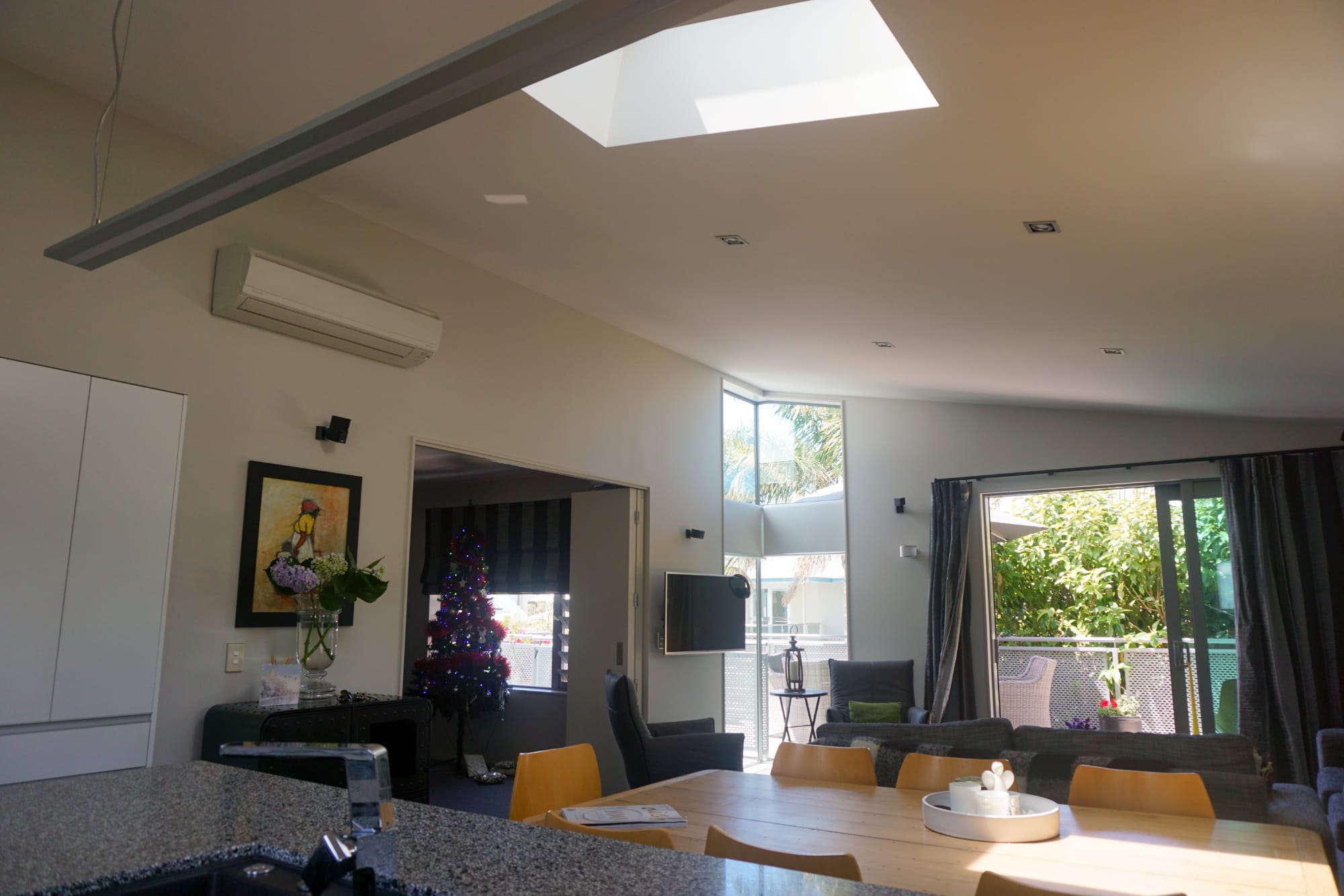 This house was designed to maximize views from the first floor living area across to the coast, to provide first floor external spaces, to present a strong visual presence on the long entrance side of a relatively narrow corner site, and to create an interesting internal route up to the main living and sleeping spaces. The project was successful and the practice is currently working on a two townhouse project for the same clients in conjunction with two additional parties.